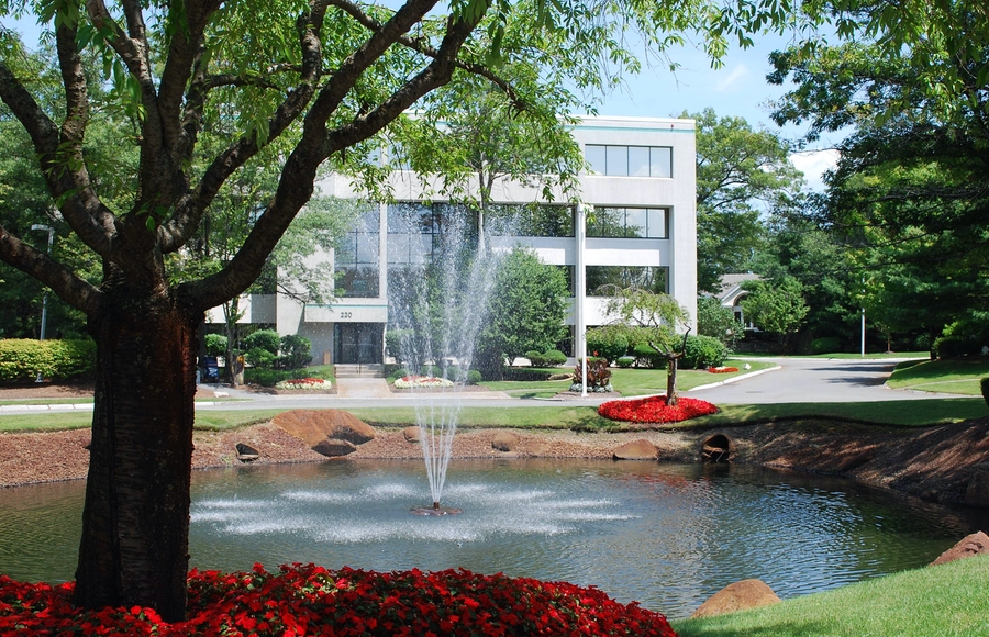 - Kitchen area with cabinets, sink and refrigerator (with built in Keurig machine)